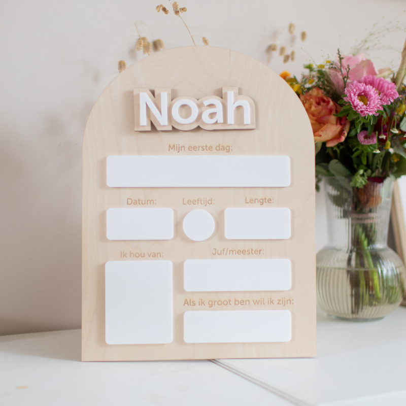 Invulbord - Met naam -Hoe leuk is dit bord om in te vullen en een foto mee te maken tijdens de eerste en laatste dag naar de peutergroep, zwemles of grote school! Je kunt met whiteboard stiften het bord invullen en je kindje ermee op de foto zetten. En…
